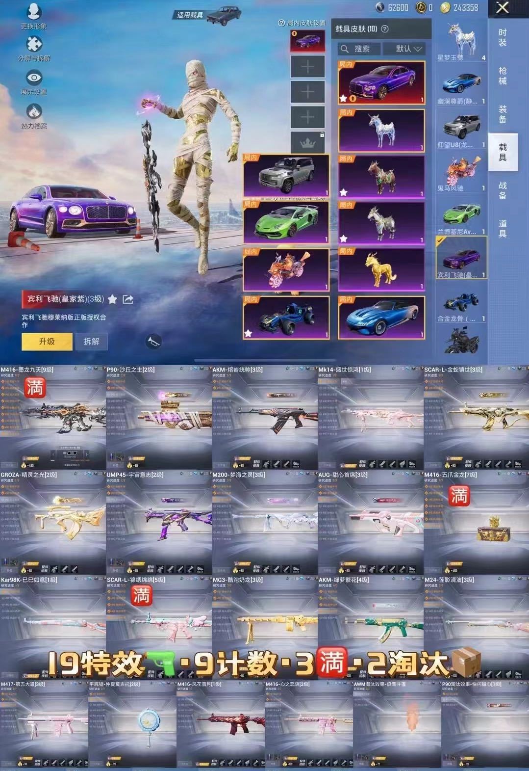 牛逼战神/7神装/6级图卡盟/满级墨龙惊鸿欧若拉露米娜妮芮坦塞卢姆关公/3级皇家宾利金麒麟螳螂3绝世