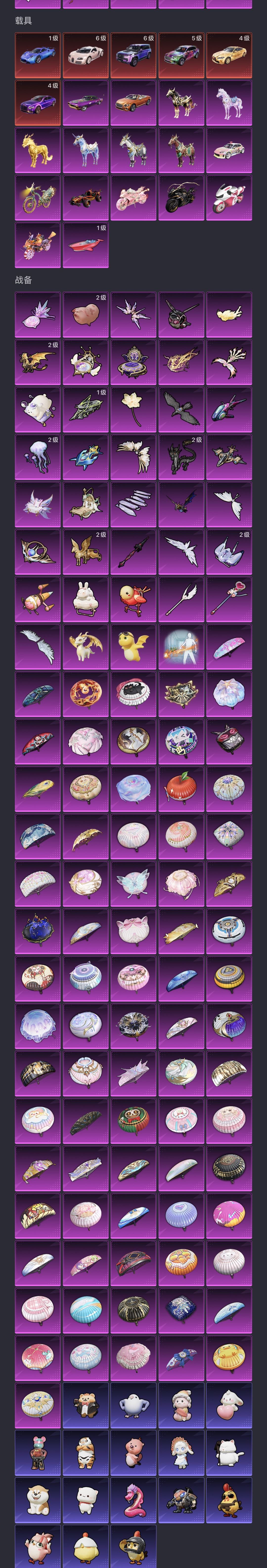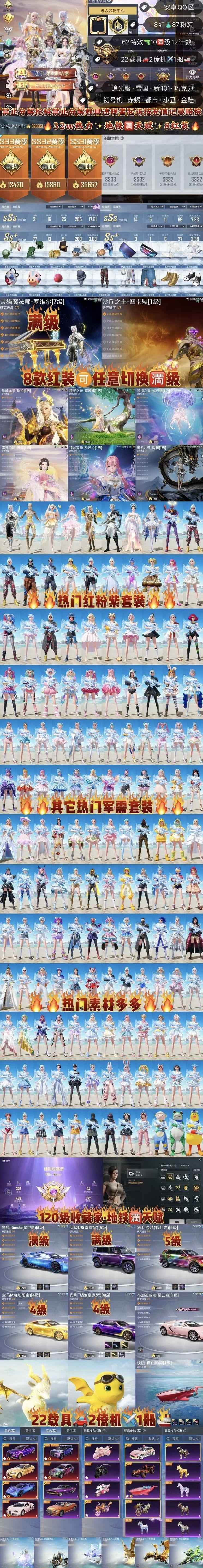 满级素材男神套 魂环螳螂 新小丑 旧小丑 都市 赤蝎 金鞋子 追光服 雪国 巧克力全套 放客 猪妹 极限特训 2b战斗服 胖达团团 洛天依 白勺歌姬 2级布加迪威龙 金麒麟 飞龙