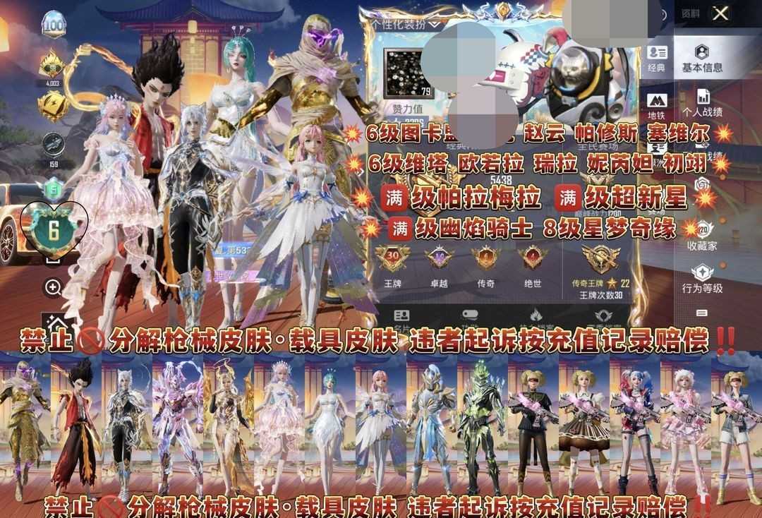 顶氪号✨10红装6级哪吒图卡盟欧若拉✨满级车保时捷帕美✨满级超新星星梦奇缘金蛇幽冥沙丘至情