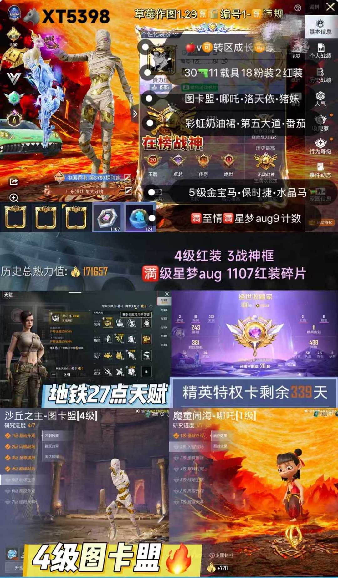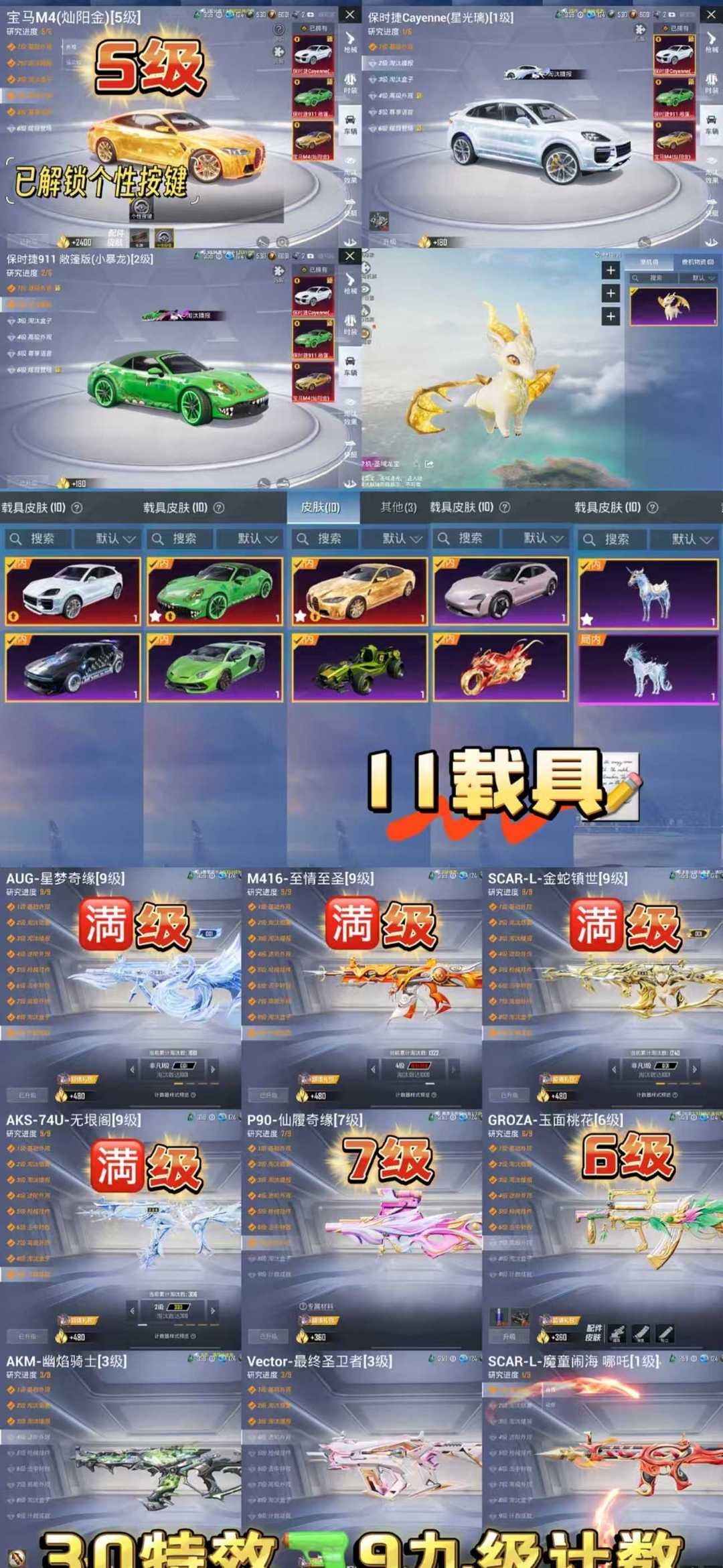满级无垠阁满级星梦奇缘满级至情至圣满级金蛇斯噶/5级金宝马/4级木乃伊哪吒/3战神框