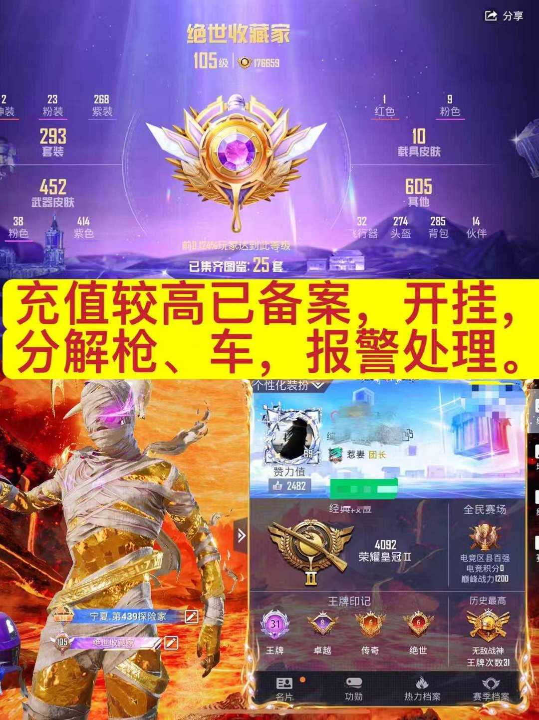 充值较高已备案,开挂,分解枪、车,报警处理。