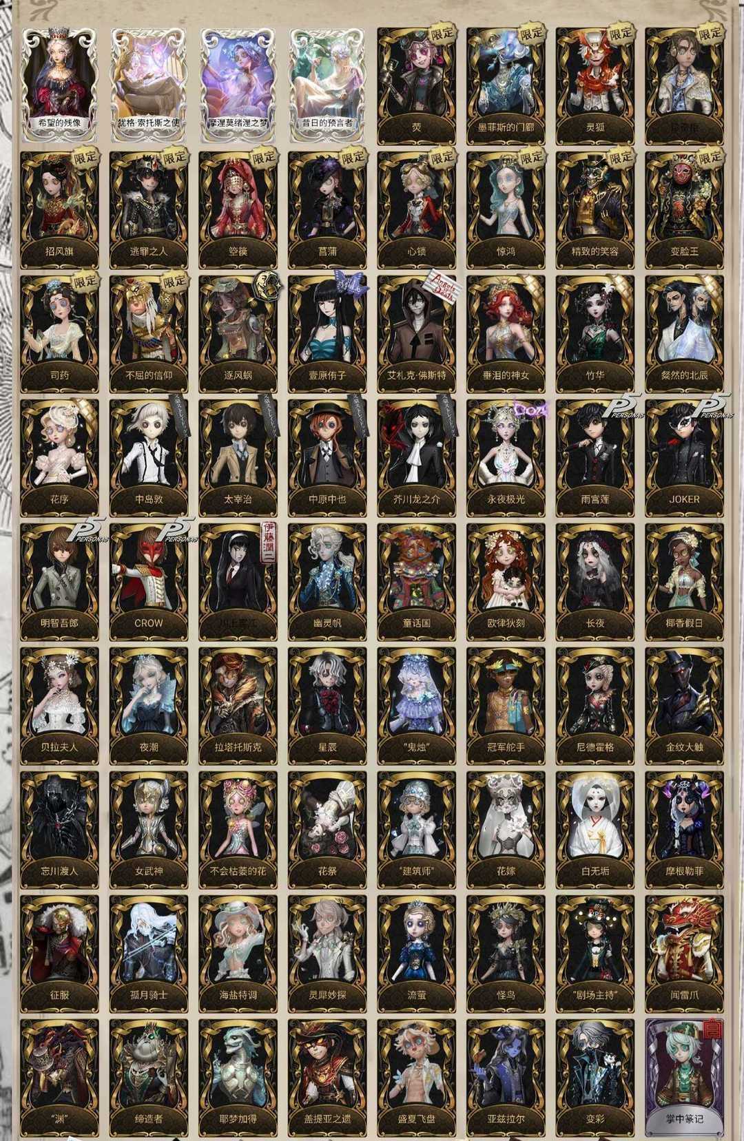 共享满虚妄♥115金♥氪4万♥JOKER♥文豪野犬满配♥杀戮天使♥壹原侑子♥逃罪之人♥箜篌♥萤♥灵