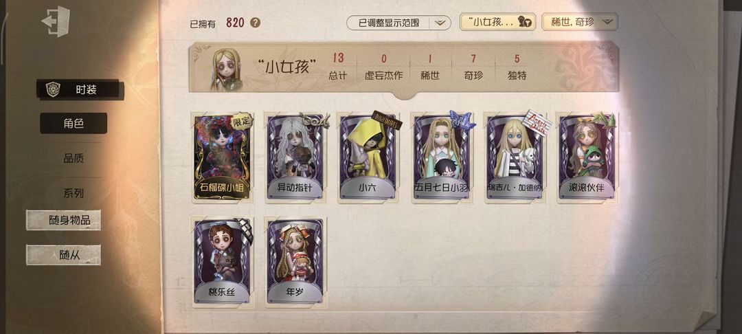♥艾扎克瑞吉儿♥蚀日者♥哲人石♥不合时宜的威鲁佛♥采风的仙灵♥破碎的弗拉吉尔♥与此岸赴宴♥自由领袖D♥星之王♥死生之谕♥黎明赋格♥P5全皮(JOKER,CROW,SKULL,VIOLET觉醒)♥深渊五全套♥芙莉莲全套♥Linefriengs全套♥福尔摩斯全套♥镰田光司全套♥纸嫁衣全套♥故宫全套♥伊藤润二全套♥夏日全套♥肯德基全套♥OPH小队全套♥时光代理人全套♥B.DUCK全套♥小小梦魇全套♥BLK小队♥非人哉♥Hello kitty♥金紫数为时装+挂件♥