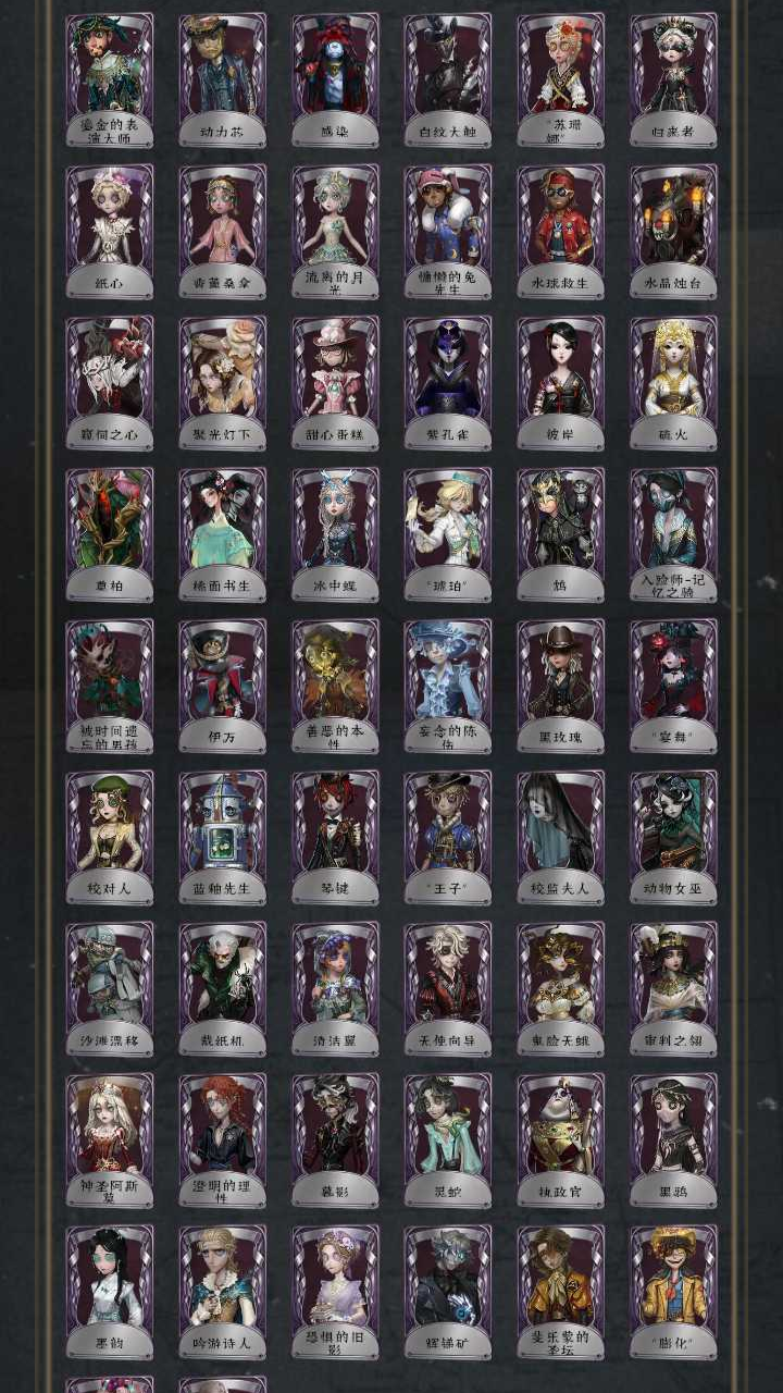 司药/名誉首席/溯光/永恒/红骑士/采风的仙灵/雨宫莲/joker/明智吾郎/垂泪的神女/幽灵公主/怪鸟/天河/变彩/椰香假日/盛夏飞盘/灵犀妙探/瑶彩/长夜/星象师/海盗船匠/新岛真/佐仓双叶/高卷杏/坂本龙司/skull/喜多川佑介/fox/芳泽霞/violet//百万人鱼/未知射线x/爱神之吻/裁缝夫人/逐浪的玫瑰/潘塔龙/善忘的海马体/多色印刷/收藏品/天海兰太郎/毕业日/霓虹先锋/可妮兔/蛙里奥/B.Duck潮/Rice/弧矢星/萌竹守护者/家园设计师/滚滚伙伴/江户川乱步/火炮手/渔女kfc/亚伯拉罕葛雷/源自星晨/弦音畸变/oph奈布/oph卢卡/异动指针/伊始新篇/义体再构/雷斯垂德探长/加里/陶梦嫣/赞因/啊乌拉/菲伦/秘密大厨