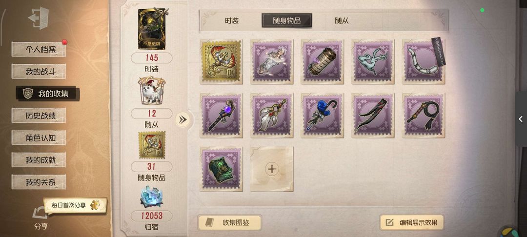 随身物品数量:31
