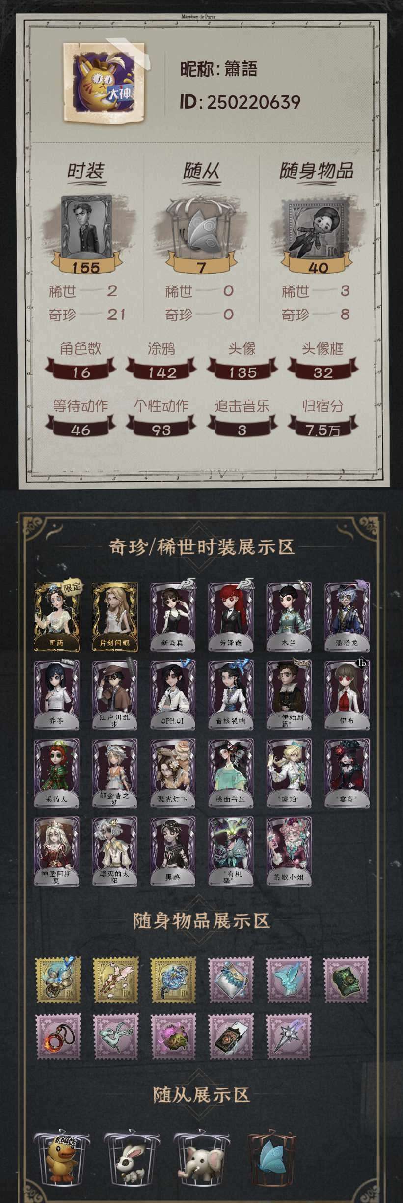 第五人格古董电竞皮乔苓,黑鸦木兰等.其他道具如图
