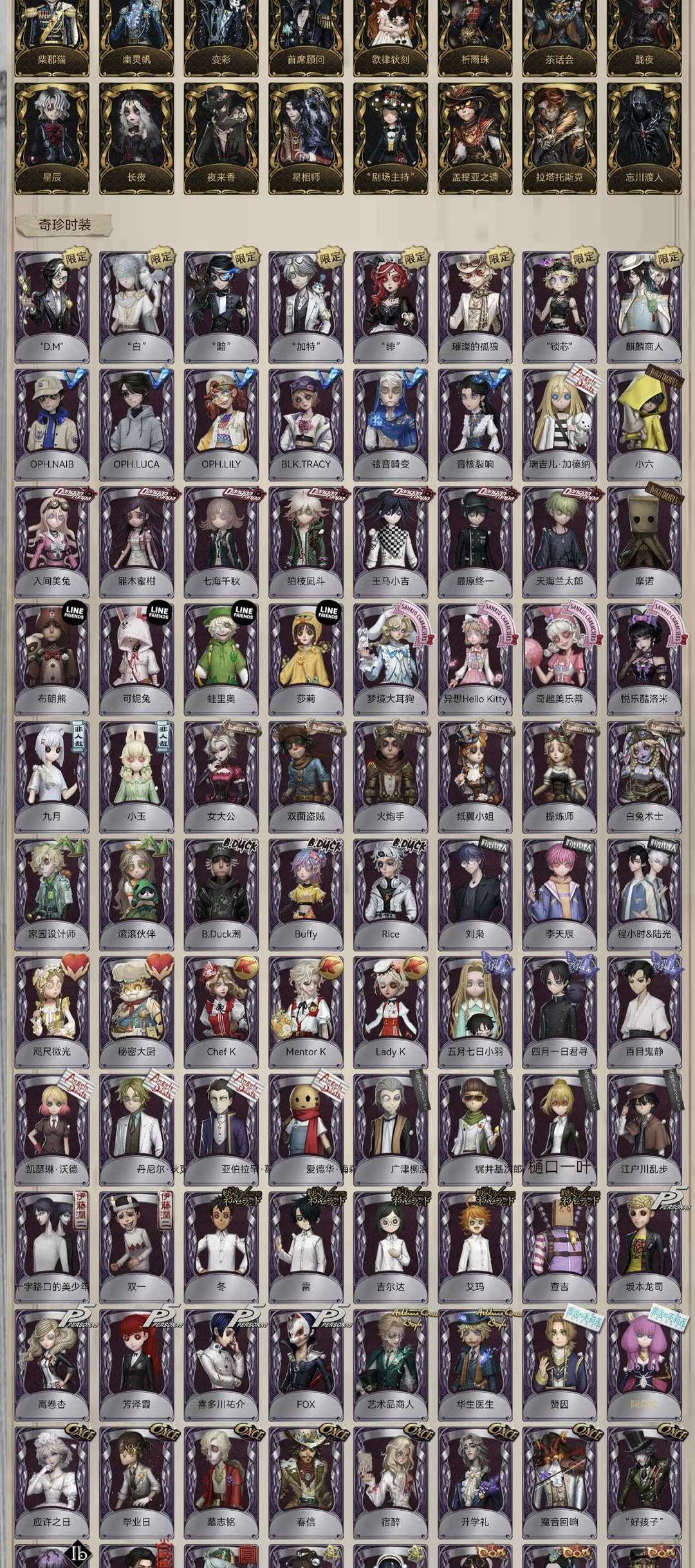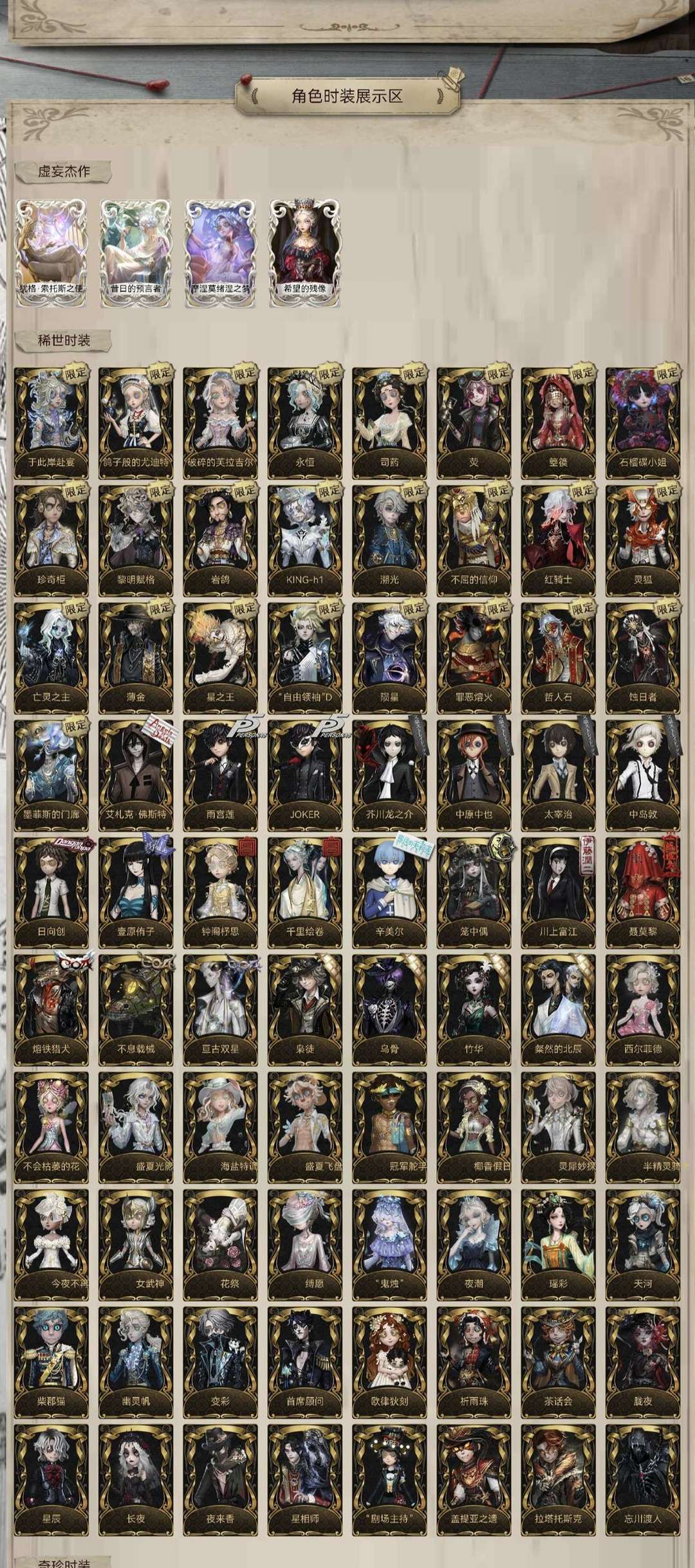 82金:鸽子 赴宴 荧 箜篌 永恒 芙拉吉尔 石榴碟 珍奇柜 文豪f4 JOKER 岩鸽 king-h1 黎明赋格 红骑士 灵狐 亡灵之主 薄金 星之王 自由领袖 陨星 罪恶熔火 哲人石 蚀日者 墨菲斯的门廊 艾扎克 雨宫莲 日向创 壹原侑子 钟阁予思 千里绘卷 辛美尔 川上富江 聂莫黎