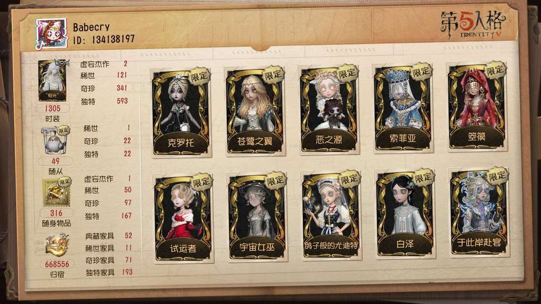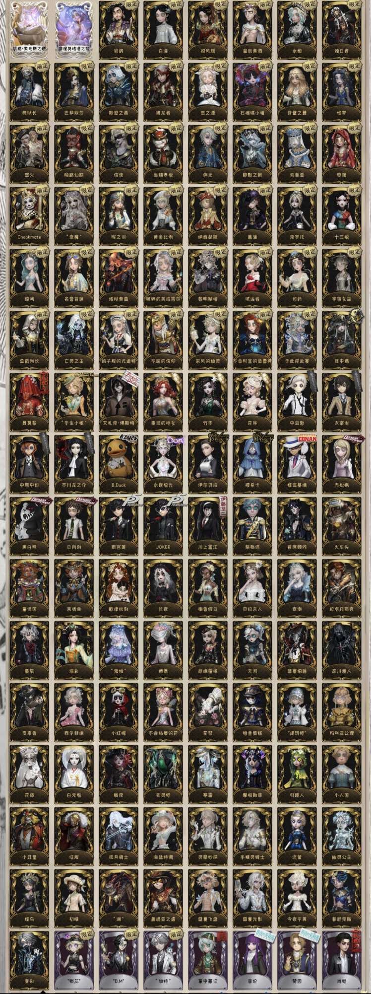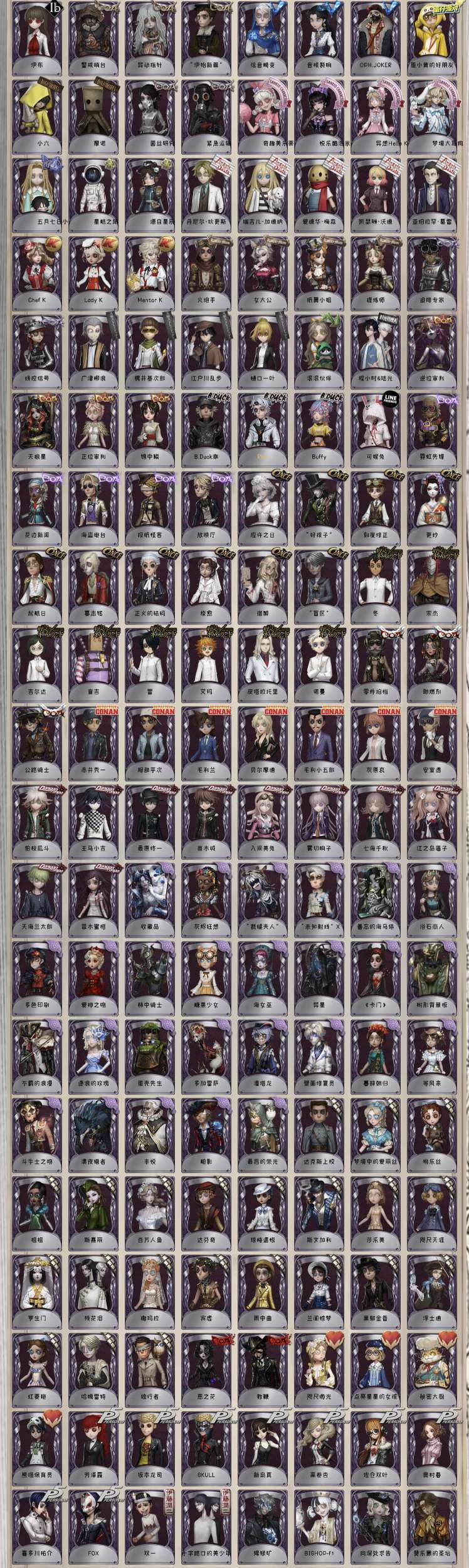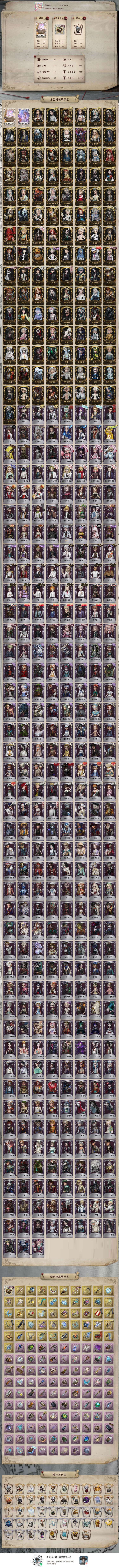 ✨亮点:调香虚妄/祭司虚妄/岩鸽/白泽/温泉煮酒/永恒/蚀日者/典狱长/巴萨丽莎/欺惑之燕/猎龙者/恶之源/石榴碟/苍鹭之翼/恒梦/怒火/陌路仙踪/信使/静默之戟/索菲亚/箜篌/Checkmate/“夜魔”/晖之羽/黄金比例/纳西瑟斯/菖蒲/克罗托/十三娘/惊鸿/名誉首席/炼狱奏曲/破碎的芙拉吉尔/试运者/司药/宇宙女巫/总裁判长/亡灵之主/鸽子般的尤迪特/采风的仙灵/不合时宜的危鲁弗/聂莫黎/“华生小姐”/札克/中岛敦/太宰治/中原中也/芥川龙之介/B.Duck/永夜极光/伊莎贝拉/穆希卡/怪盗基德/赤松枫/黑白熊/日向创/JOKER/DM/加特/黎明赋格/于此岸赴宴
