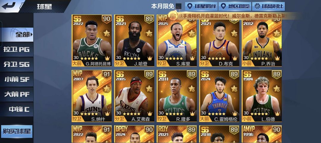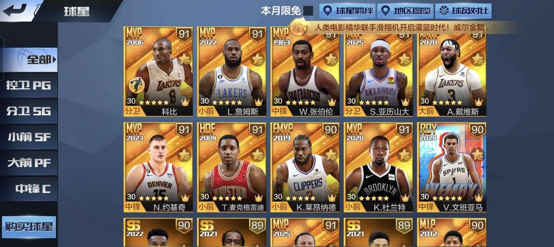 天选13点券60+3典藏天选新老库里园区浓眉天大帅二专屠龙纳什麦迪新湖詹天约亚历山大天字母