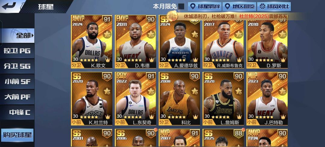 可排位!新天选火箭杜兰特!硬汉科比!天选纳什!天选欧文!天选威少!看图