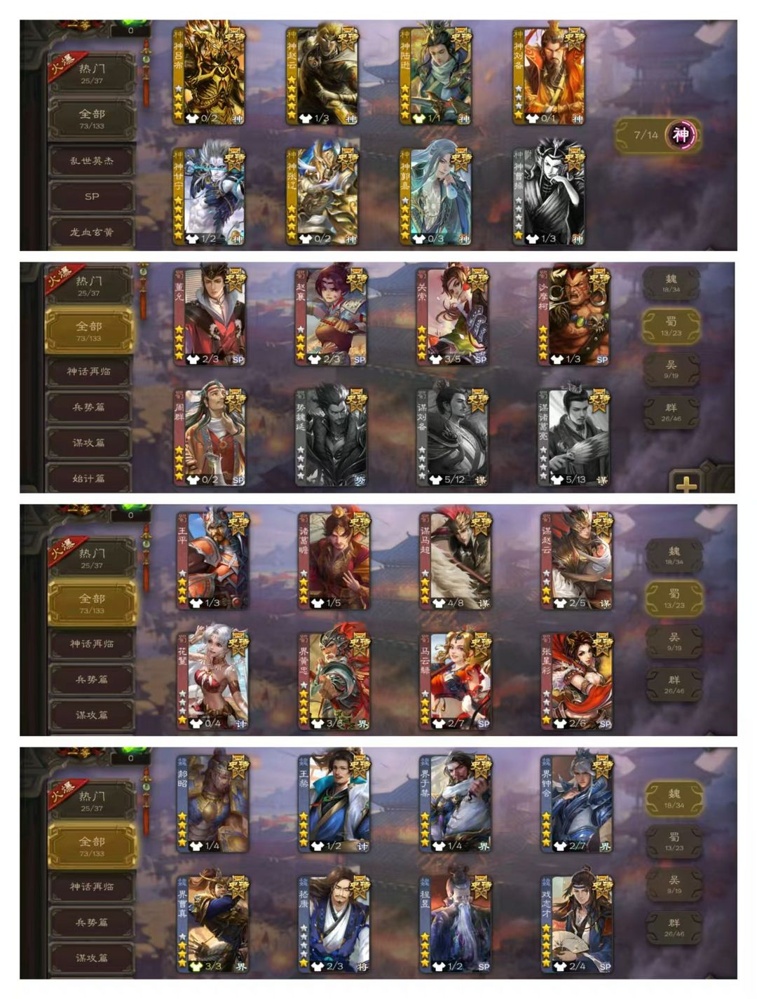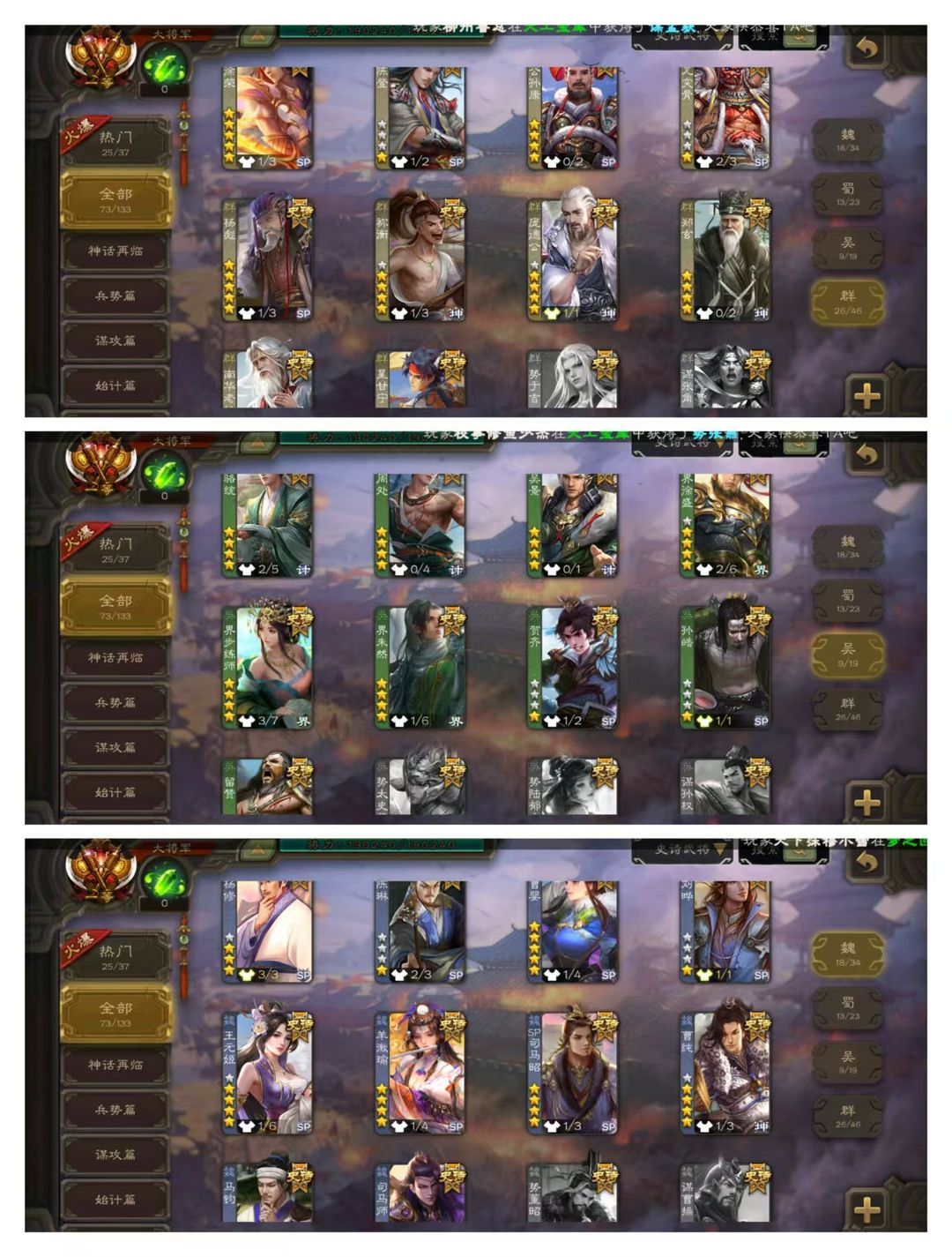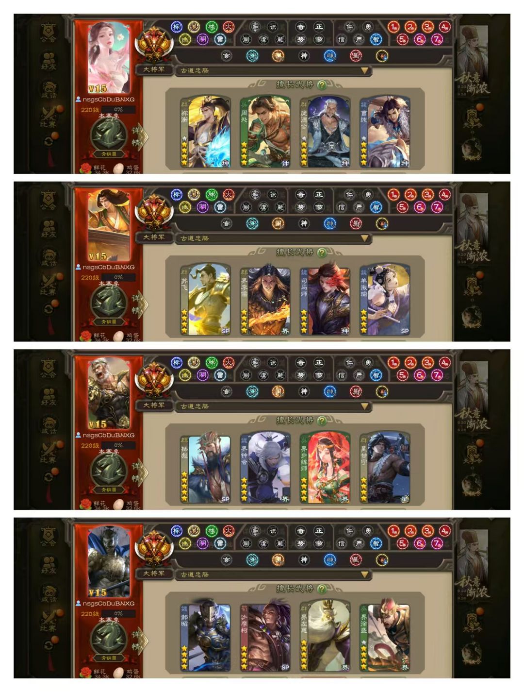 官方一等大将军,无卡,VIP15! 9五星炎龙:神甘宁戏志才刘焉徐荣曹婴动皮! 55四星玉龙:神赵云陆逊留赞关索动皮,界徐盛张让马钧王允界李儒郝昭杨彪金皮,王元姬司马昭卑弥呼界左慈动皮,界钟会界步练师星甘宁动皮,羊徽瑜庞德公动皮,神郭嘉南华老仙杜预司马徽周处! 73史诗武将! 83动皮155金皮195国战皮肤!