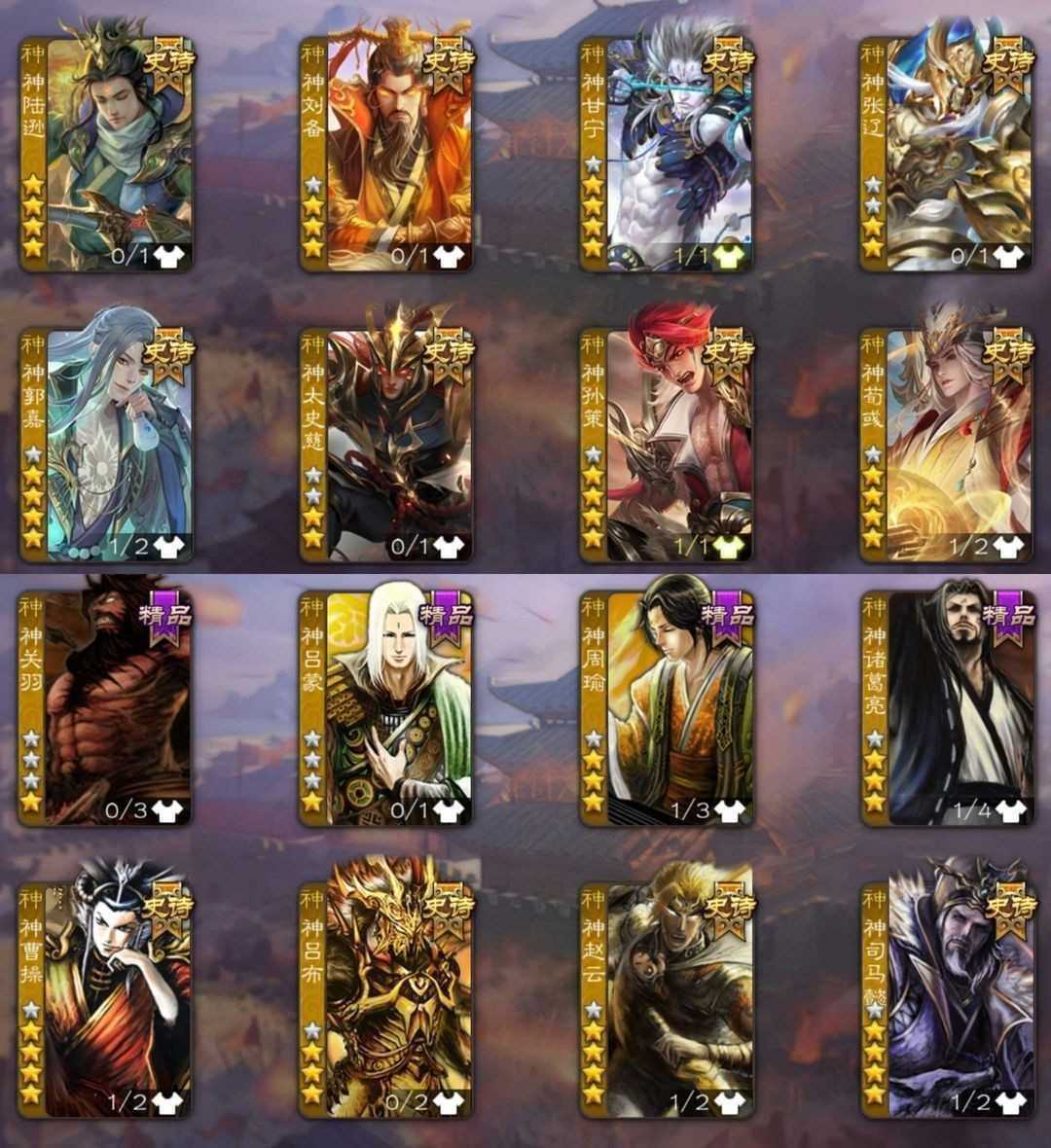 【有卡】♉回廊谋关羽♎势若万钧文鸯♓六巨头大将军♍回廊孙寒华回廊谋貂蝉❤回廊沙摩柯回廊神甘宁
