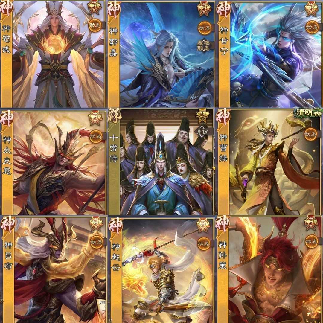 有卡❤️新司马昭♈在榜重氪♈新张奋♌四方归心神曹操♑双形态神郭嘉☀文鸯☀杜预☀界钟会♏天子谋曹丕