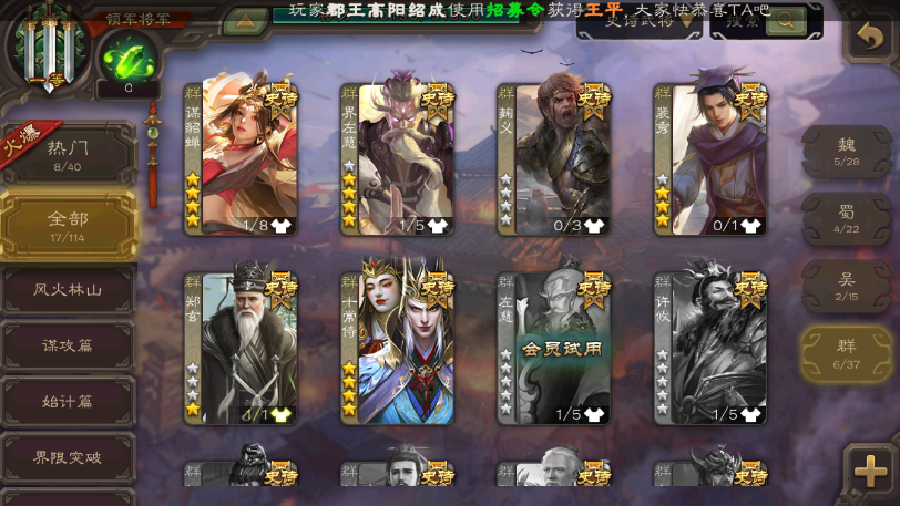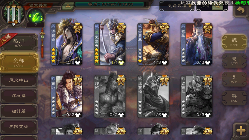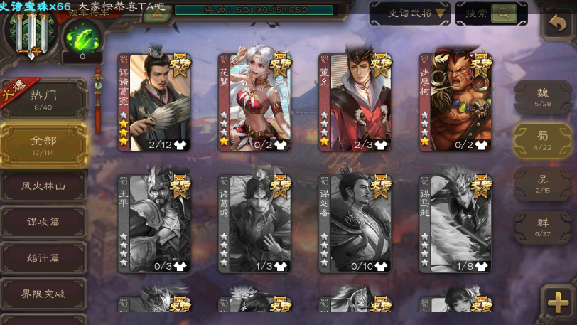 【有卡有豆】大将军◆动刘焉◆回廊神曹操◆回廊徐荣◆回廊神甘宁60史诗动神赵云动界钟会马钧谋夏侯大宝