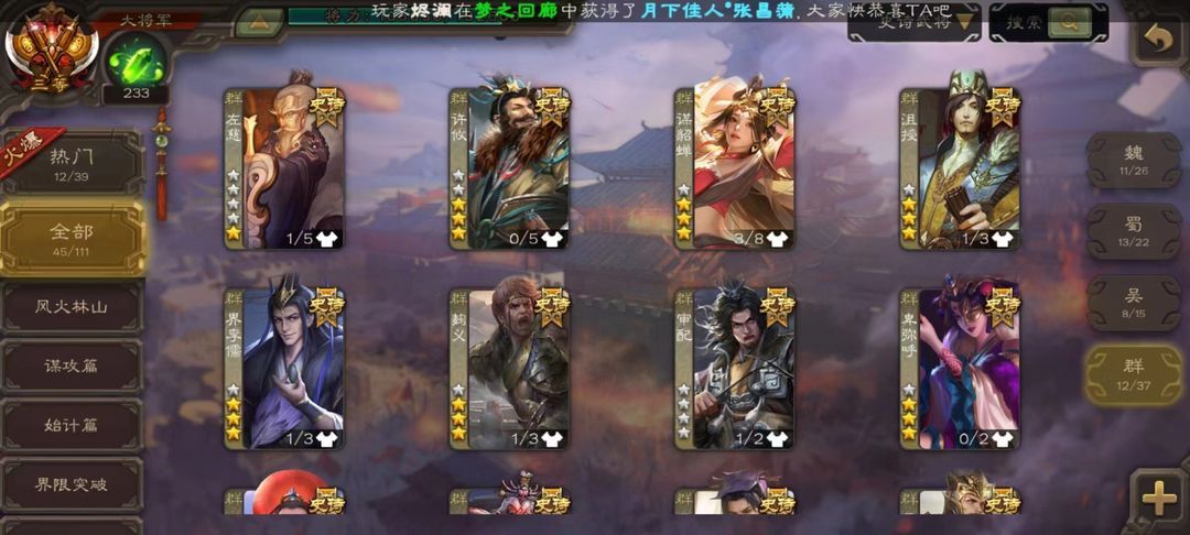 有点将卡】大将军★玉龙动神荀彧★谋黄忠★动谋貂蝉★文鸯★动界钟会裴秀45史诗界李儒界徐盛卑弥呼神赵云