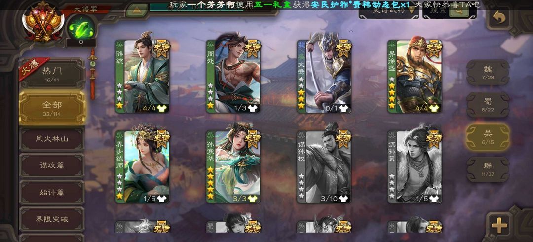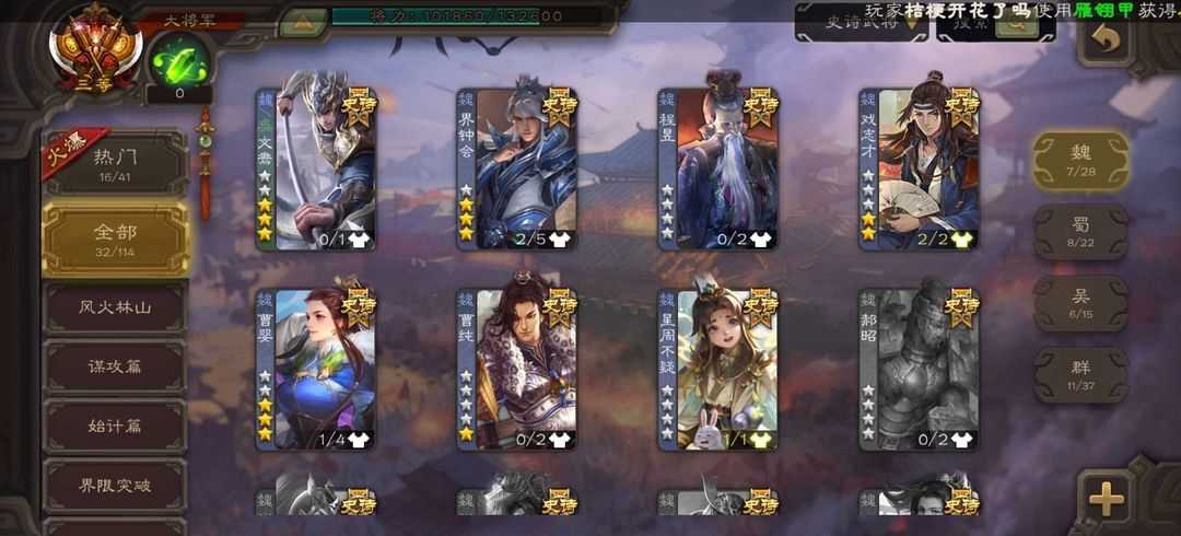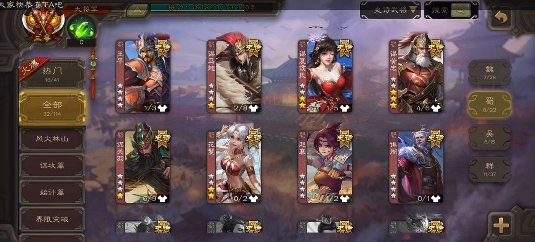 大将军【有点将卡】动刘焉◆文鸯◆双形态界钟会◆动谋黄忠动界徐盛动谋关羽◆动孙寒华界左慈十常侍