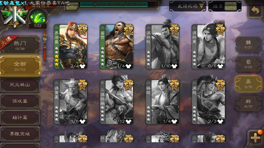 大将军【包菜包天】动神甘宁◆回廊动神孙策势若万钧回廊文鸯◆十常侍动界钟会-界徐盛大宝麹义界左慈界李儒