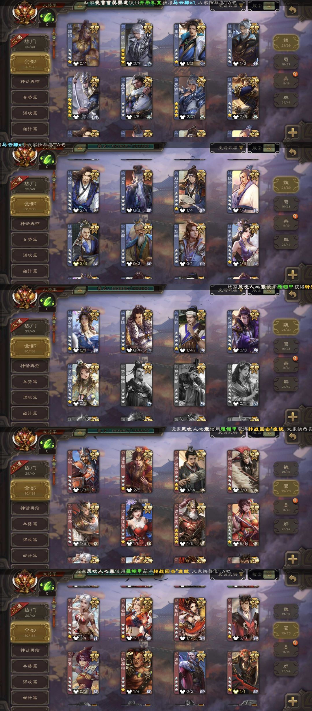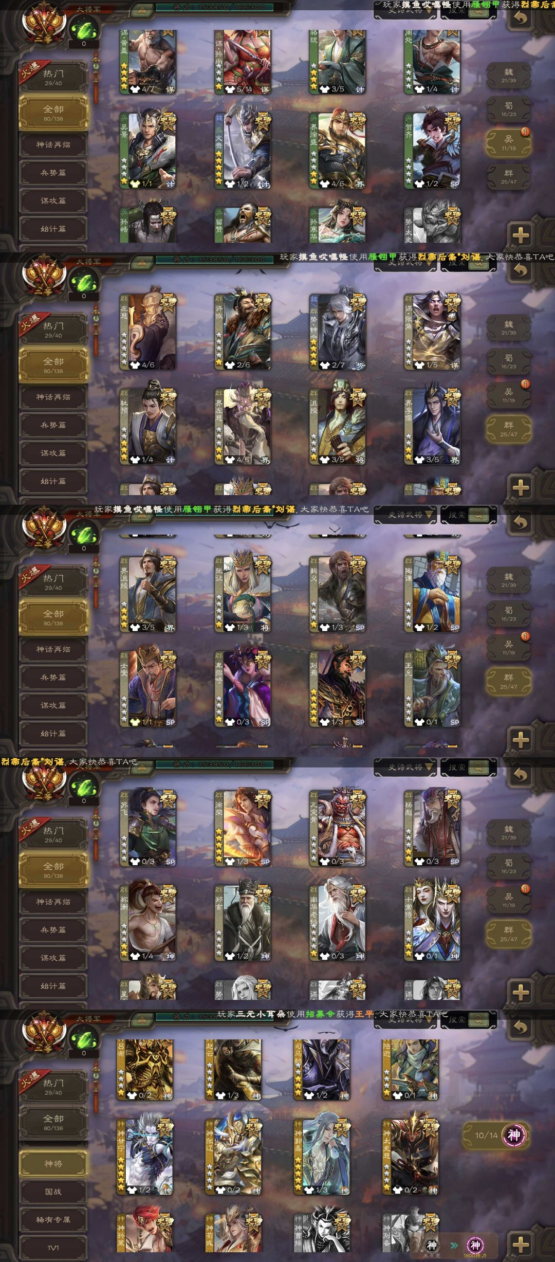 有卡!势钟会80ss/动态界沮授神司马懿文鸯/动态谋黄盖谋黄忠/动态刘焉神荀彧神郭嘉