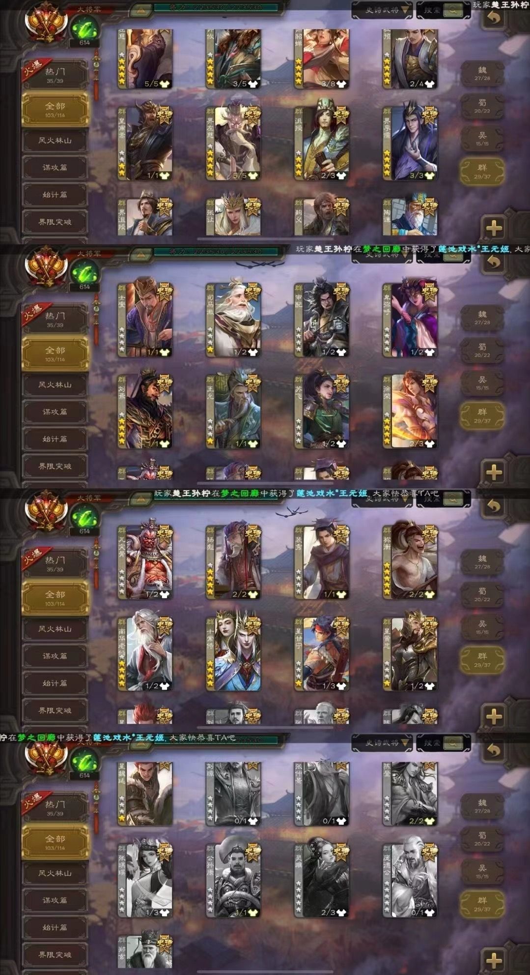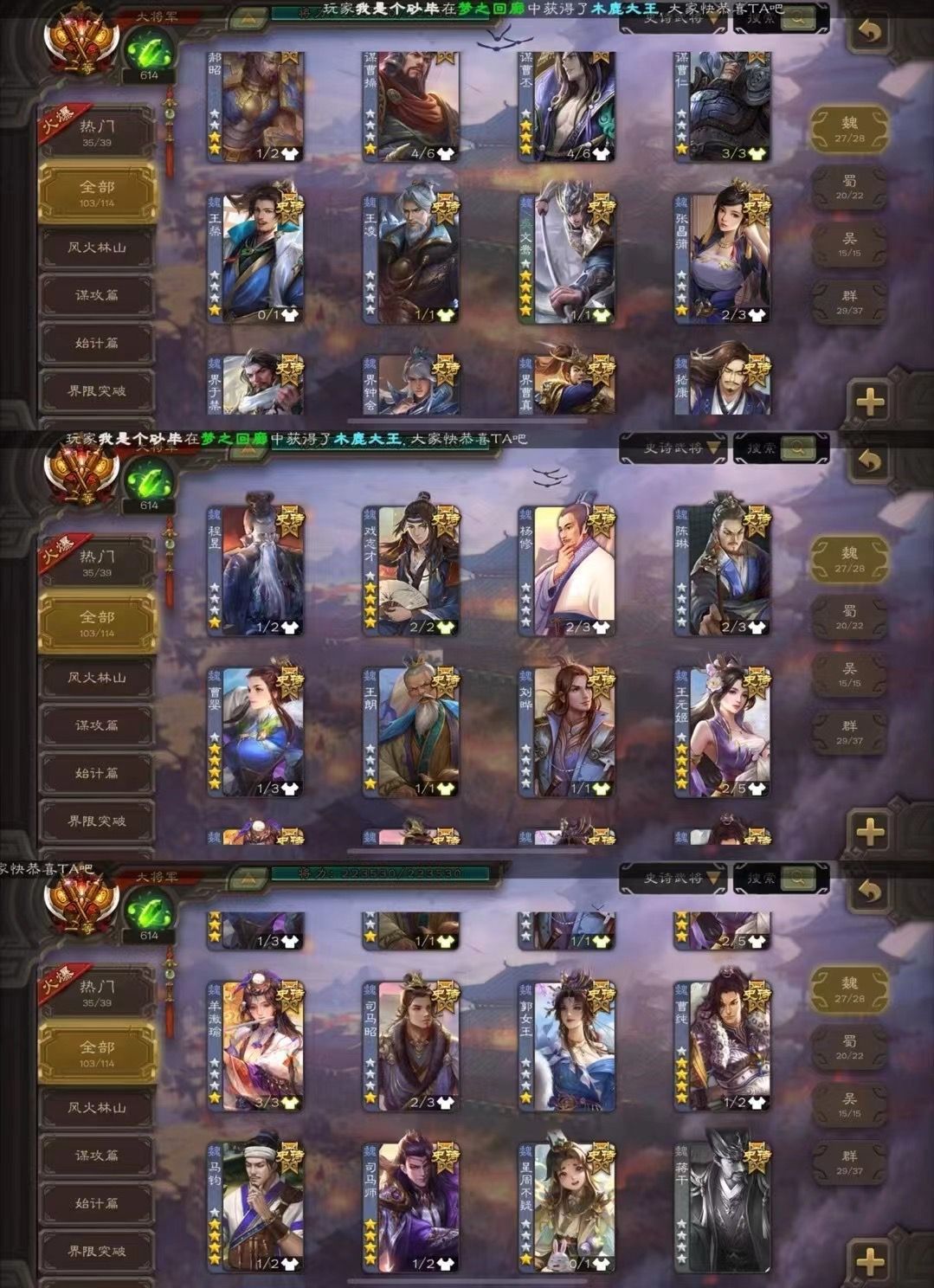 动态神司马懿【伪全扩一等大将军22万将力全神103史诗V19】倚星折月神郭嘉刘焉全巨头动谋曹丕神鲁肃