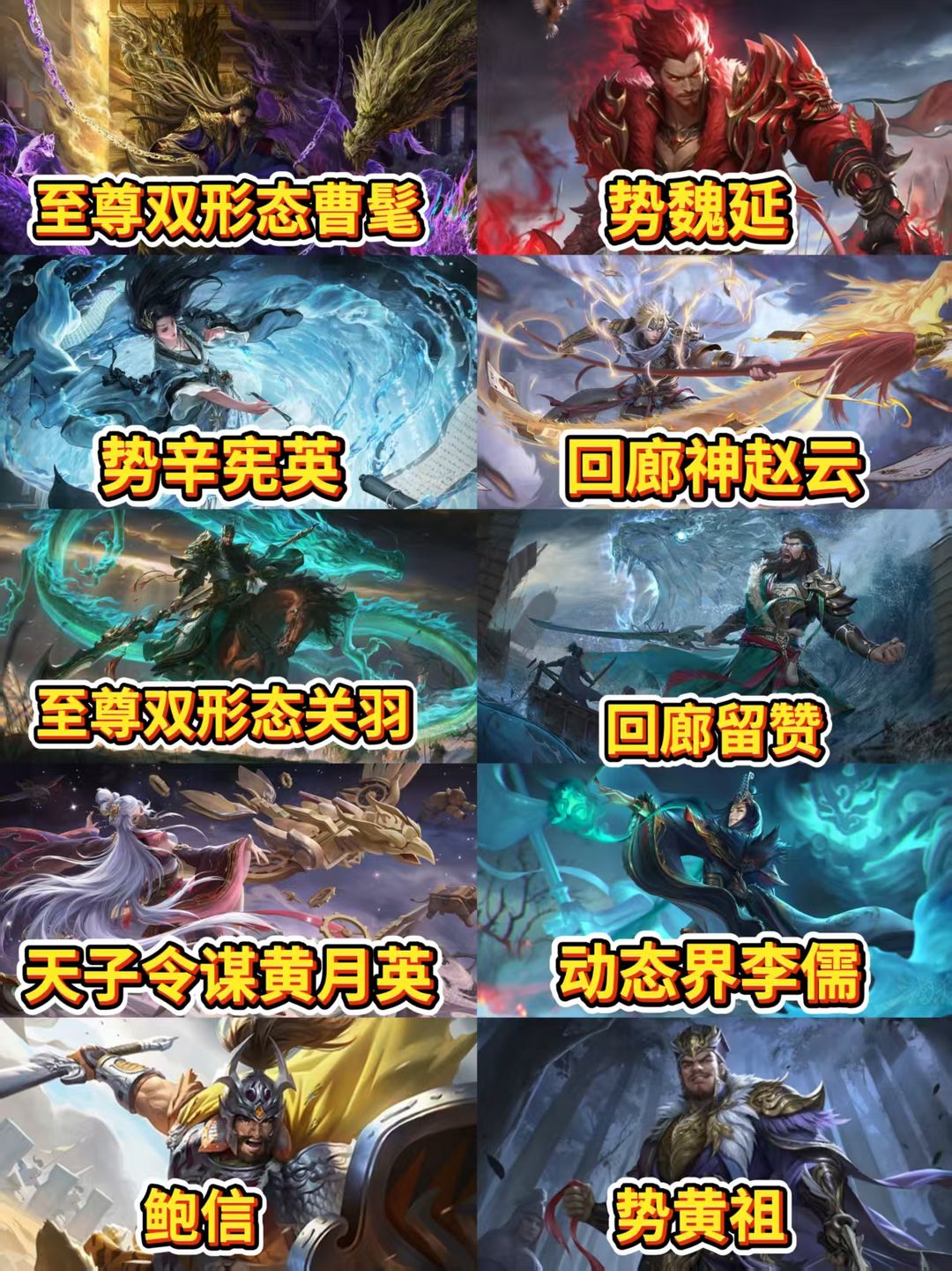 【有卡】至尊双形态曹髦☀势魏延势辛宪英☀至尊关羽☀回廊神赵云谋黄月英☀回廊留赞骆统势黄祖鲍信