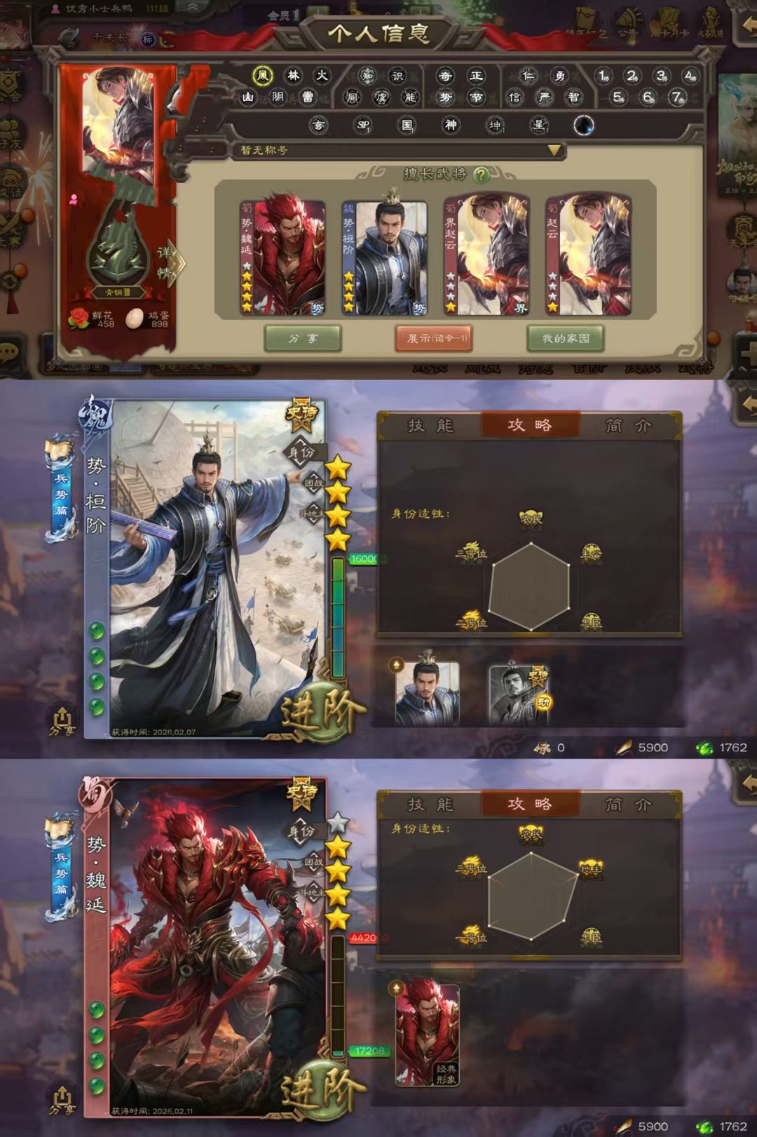 【卡酱】热门史诗势魏延☀节钺令新史诗势恒阶☀势恒阶势魏延体验小号