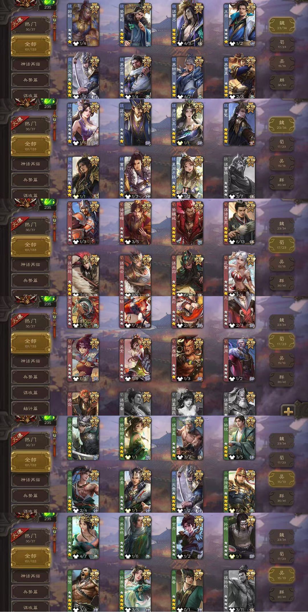 ◆一等大将军101ss武将◆171排位将池超齐全◆新热门回廊齐全◆四个女奇门都有