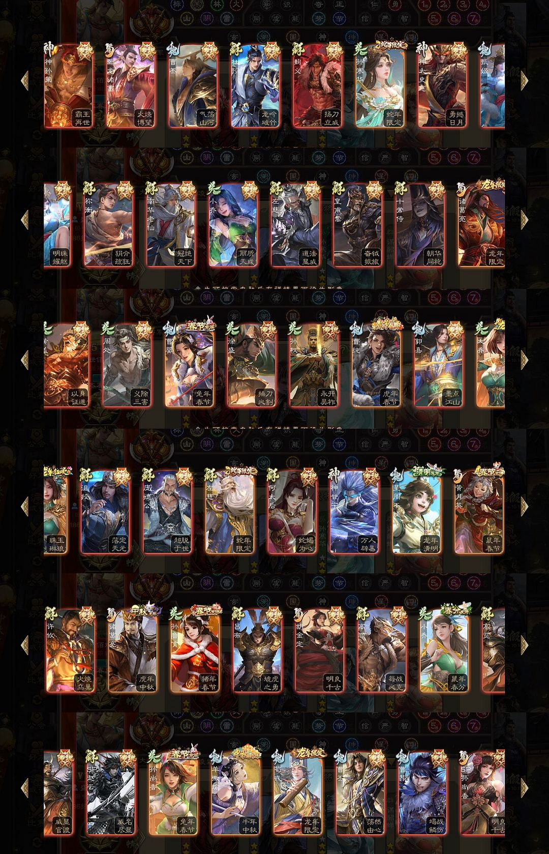 ◆ 新回廊神鲁肃谋曹丕/新回廊大宝/势陆郁生/势魏延/势于吉/势太史慈/势董昭/友诸葛亮/张奋/鳞振九霄神赵云/手办曹颖/双形态谋孙策皮肤/双形态钟会/回廊十常侍/双形态神郭嘉/动态神司马懿/曹髦/谋关羽/以身证道谋黄盖/谋诸葛亮/回廊神荀彧/新回廊刘焉/回廊谋貂蝉/奇门孙寒华/神孙策/神太史慈/回廊界沮授/傅佥/清河公主/司马昭/谋吕布