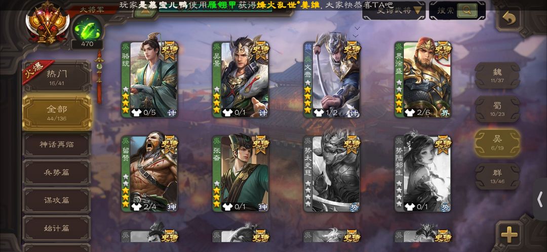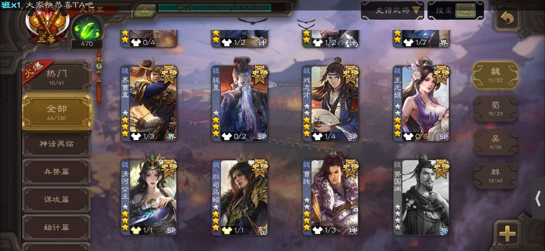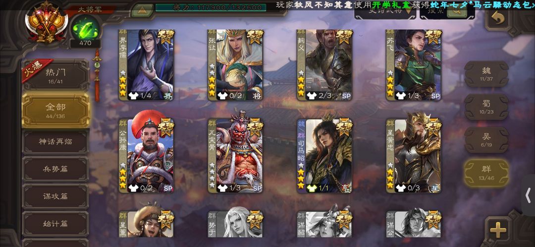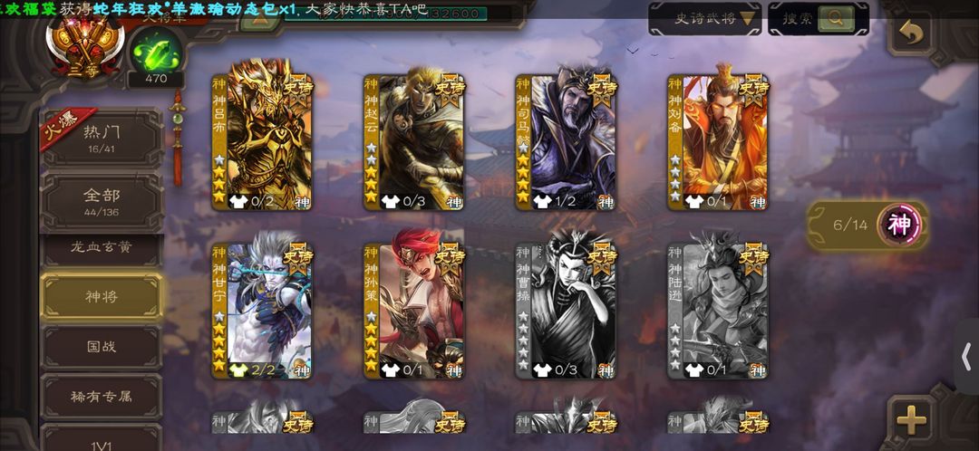 角色名:1400双形态文鸯回廊神甘宁神司马清河司马昭