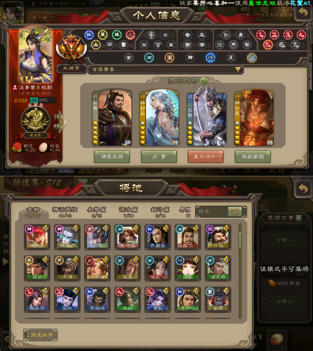动态刘焉/神郭嘉/神甘宁/神孙策/文鸯/谋黄盖/谋貂蝉/界钟会/郭女王大宝留赞白马