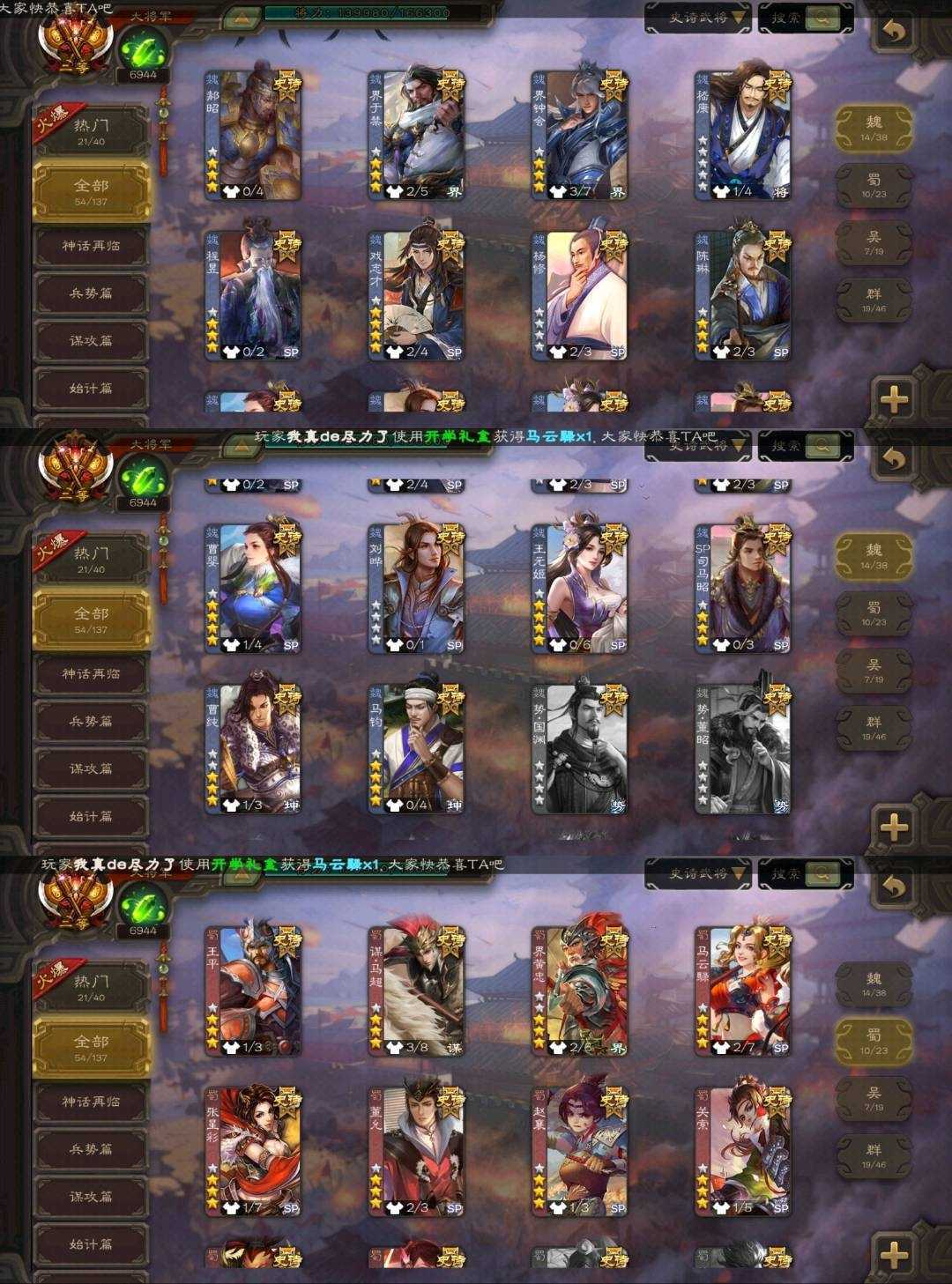 蜀国:⚡王平⚡谋马超⚡界黄忠⚡马云騄⚡张星彩⚡董允⚡赵襄⚡关索⚡沙摩柯⚡鲍三娘⚡