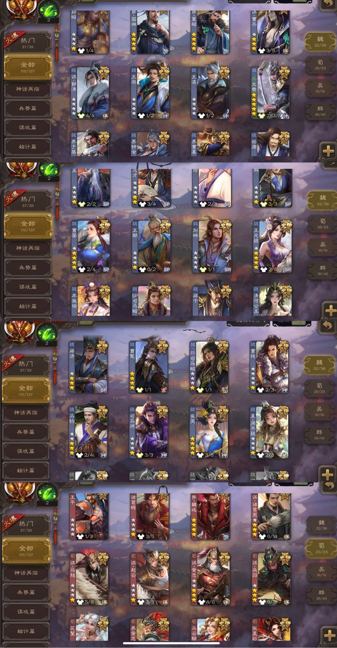 ◆崔芙/新回廊曹髦/势辛宪英/蒋济/势国渊/势陆郁生/鲍三娘/手办曹颖大乔小乔/势魏延/友诸葛亮/势董昭/动态刘焉/势于吉/势太史慈/谋黄忠/谋孙策/谋陆逊/回廊神郭嘉十常侍杜预文鸯钟会/动态神司马懿/谋曹丕/司马昭/神鲁肃/动态谋诸葛亮/回廊神荀彧/谋貂蝉/孙寒华/徐荣/羊徽瑜/sp甄姬