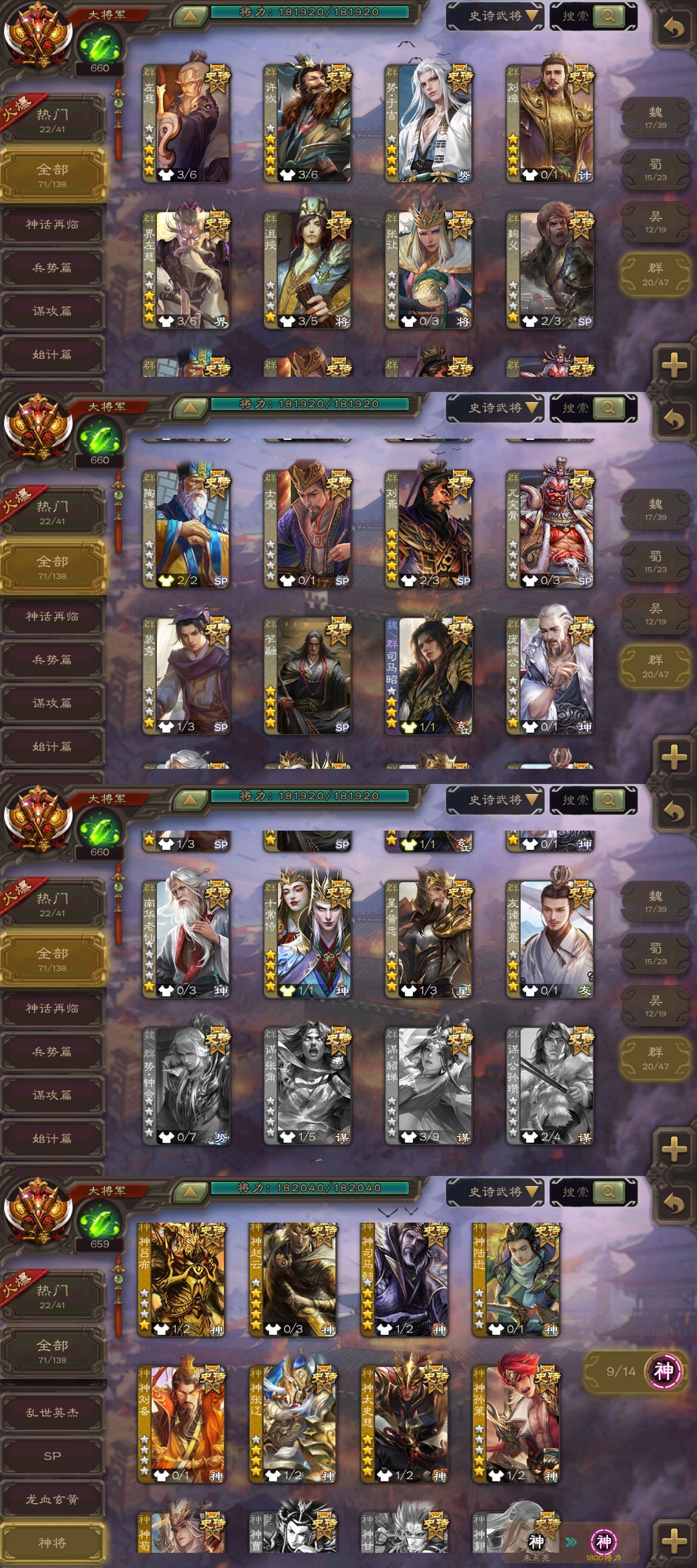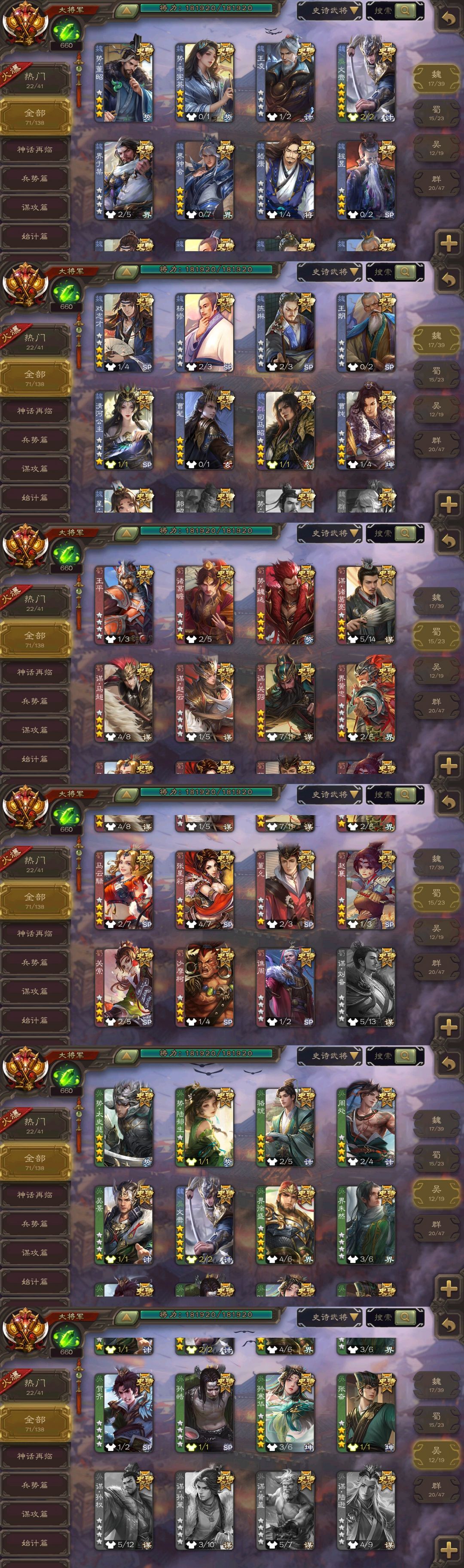手气卡✨71史诗✨势魏延✨龙兴刘焉✨友诸葛亮✨势辛宪英十常侍✨至臻文鸯笮融回廊张奋势董昭动神荀彧神司