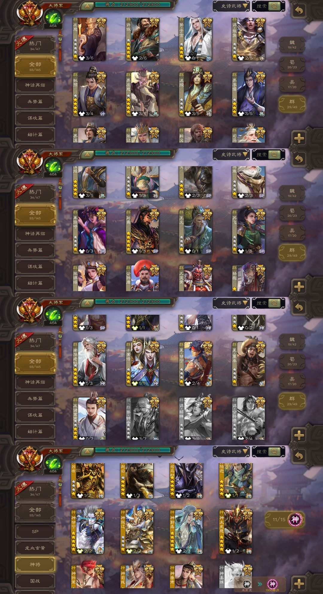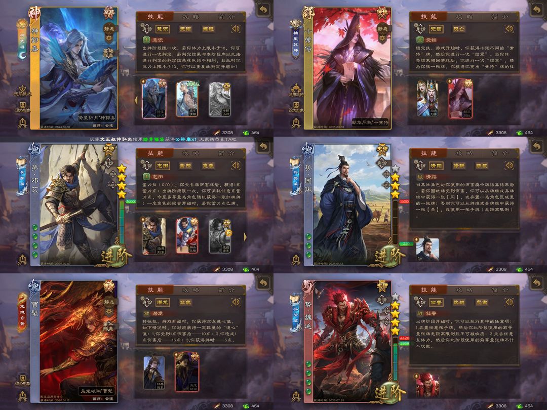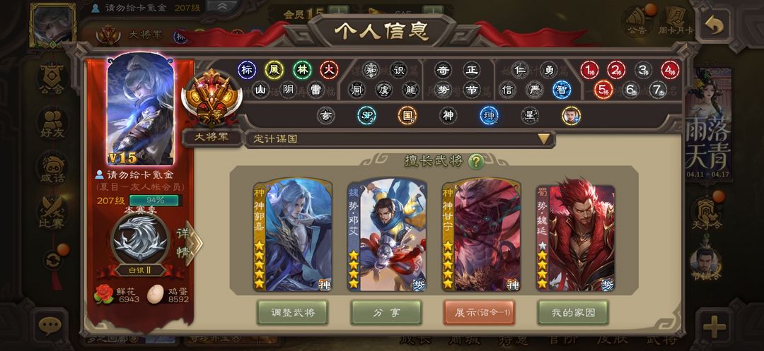 [有卡]势邓艾95史诗全扩❤️五至尊皮满阴间势魏延势国渊❤️曹髦友诸葛亮190排位一等大将军