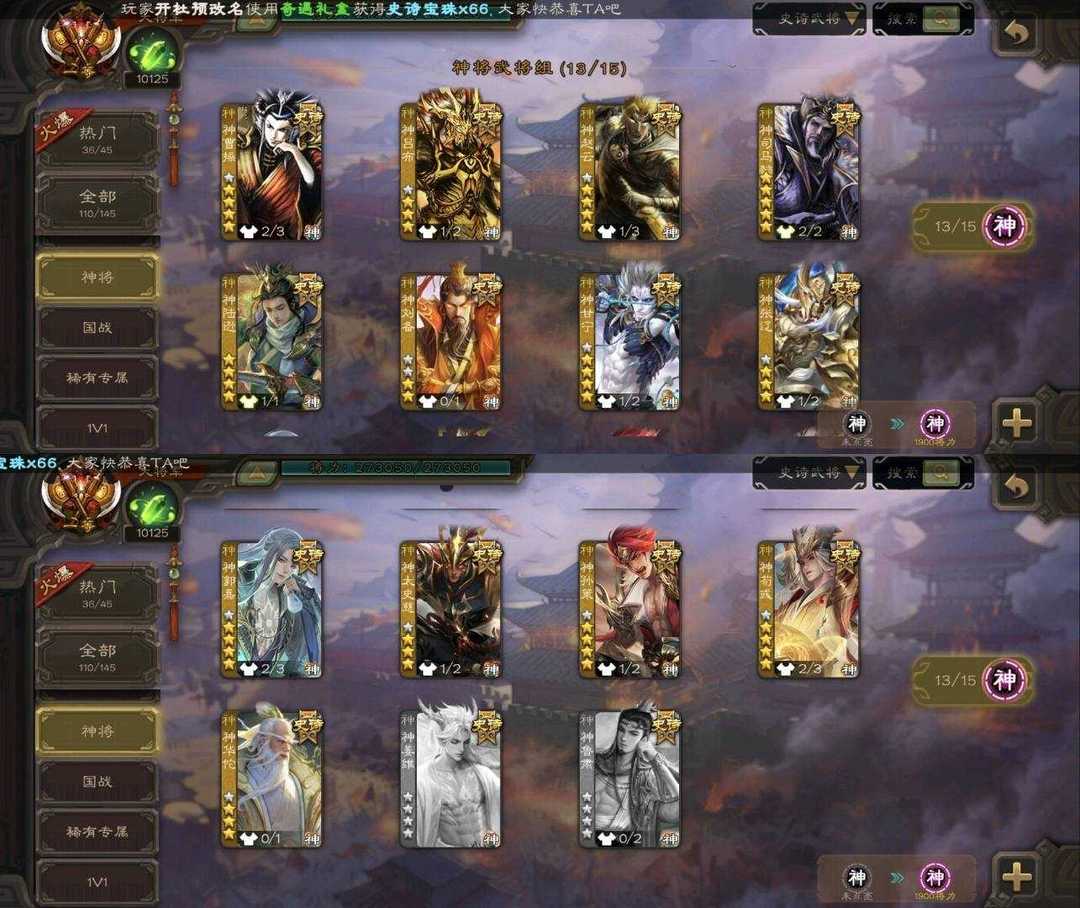 史诗武将(神将):神郭嘉,神荀彧,神甘宁,神曹操,神孙策,神华佗,神太史慈,神赵云,神陆逊,神司马懿,神吕布,神张辽,神刘备A